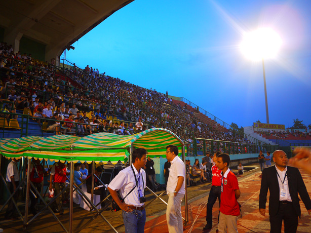 巷ではベトナムサッカーが盛り上がっているそうで、日本のJリーグからもちょこちょこ親善試合で来ているそうです。今回は川崎フロンターレとビンズンFCの試合、日本からの応援団の皆さんからすごい熱量を感じた。