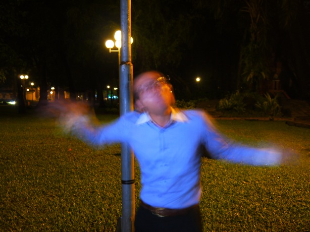 ネルソン「現在21時過ぎ、ホーチミン市内のTao Đàn公園に来ています。フラッシュを焚いているので合成っぽく見えますが、決してそんなことはありません。私は間違いなくここにいます(ホントだよ)。」