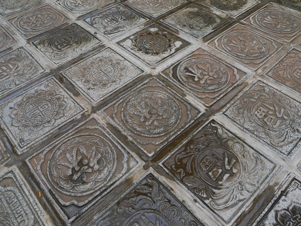 床のデザインもひとつひとつに漢字が彫ってあり、凝っています。