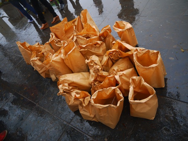 ゴミの入った紙袋たちが集まってきました。