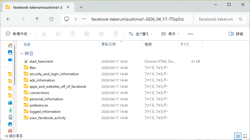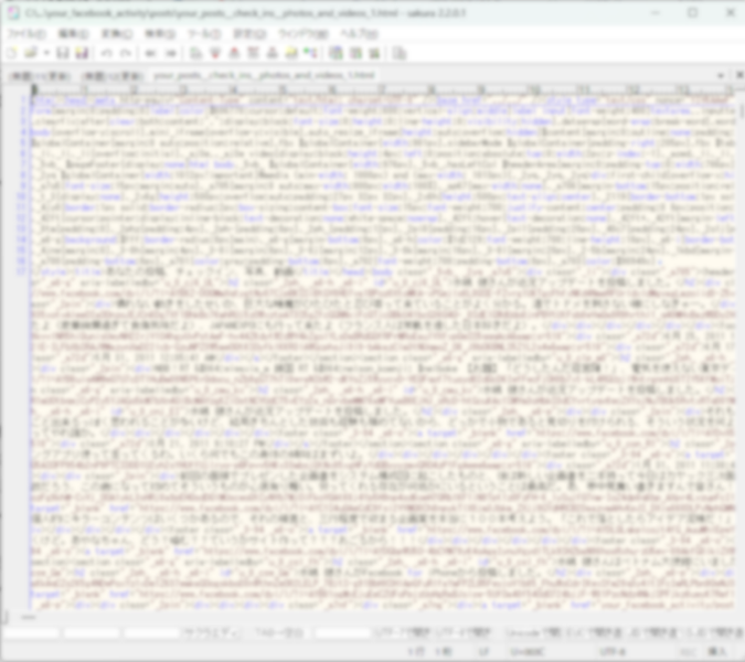 Facebook、Instagram、X、それぞれのフォルダの奥底に眠るJSONファイルやHTMLファイルを引っ張り出します。(どこにファイルがあるかはSNSの仕様変更で変わる可能性があるので注意です)。