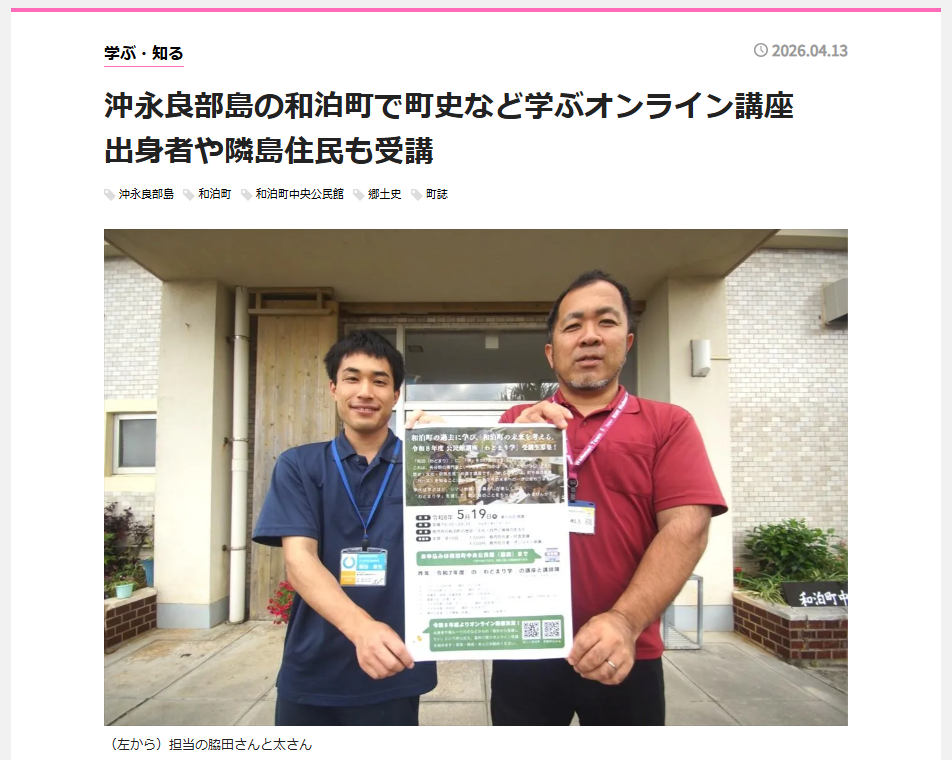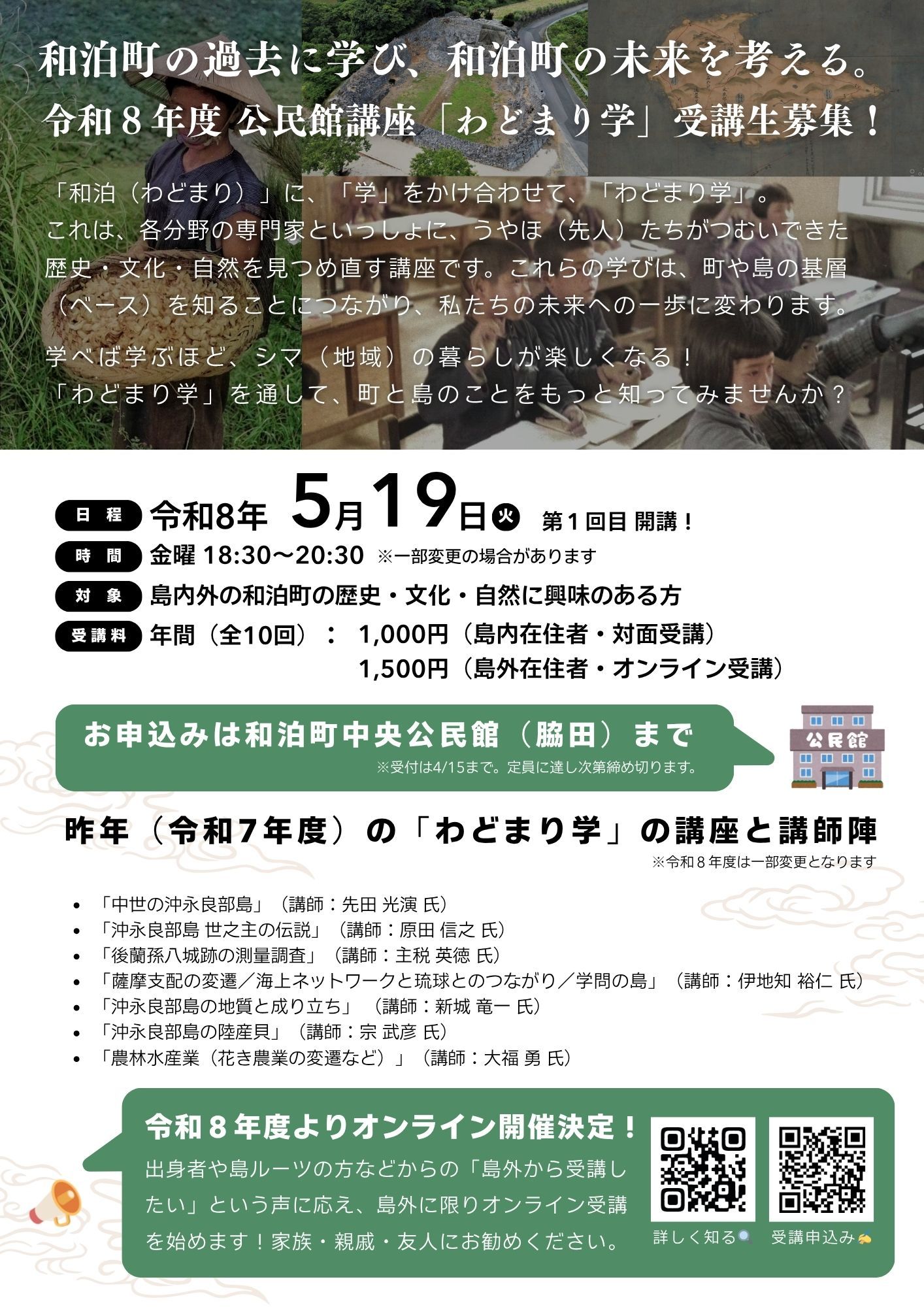 ちなみに、申し込み締め切りはちょうど本日、4月15日です。いや今日か~~~い!って、ひっくり返って2回宙返り3回半ひねりしたそこのあなた。大丈夫。毎回講師が替わるスタイルなので、途中からの受講もできると思います(昨年度は実際にそうした例もあったし)。だからこの記事を明日以降に読んだとしても、まずは諦めずに、和泊町教育委員会の「わどまり学」担当者に問い合わせてみてください!
